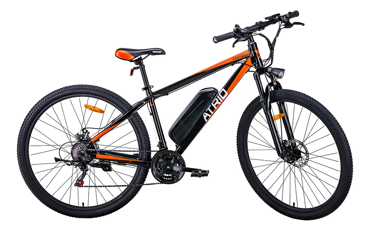 A bicicleta elétrica que acompanha seu ritmo somos loja fisica oficial atro com oficina especializada produto com nota fiscal e garantia de 12 meses A Bicicleta Elétrica Atrio Santiago transforma suas rotas diárias em uma experiência de mobilidade urbana com mais liberdade. Com boa autonomia de bateria e diversas opções de assistência, ela é capaz de enfrentar diferentes desafios da cidade. Domine qualquer trajeto A Bicicleta Elétrica Atrio Santiago é a definição de poder nos pés. O motor de 350 W e a bateria levam você até 90 km de distância, entregando praticidade e segurança. Graças às suas 21 velocidades com câmbio Shimano e passador Shimano, você tem total controle durante a pedalada - suba ladeiras com facilidade, cruze a cidade ou simplesmente curta a brisa no rosto em um passeio relaxante. E tem mais: com as opções de assistência, você pode deixar a experiência de ciclismo ainda mais completa, adaptando às suas necessidades. A Atrio Santiago é perfeita para diferentes rotas nas cidades e trilhas. Informação na palma da mão Acompanhe todas as informações da bicicleta elétrica e do seu pedal, como distância, tempo de percurso, nível de bateria e potência do motor, no ciclo computador que fica no guidão. Ele também controla a iluminação integrada e os níveis de assistência do motor. A bike blindada para suas aventuras Essa bicicleta elétrica é construída para durar. A estrutura de alumínio da Atrio Santiago é preparada para aguentar qualquer percurso que sua alma aventureira desejar. Se prepare, tem mais! Recursos que fazem toda diferença. Selim sport: maior conforto em longas distâncias. Iluminação frontal: pedale, em segurança, a qualquer hora. Freio a disco mecânico: frenagens precisas e seguras. Suspensão dianteira: absorve impactos e garante uma pedalada suave. Pedal assistido ultrassensível: ajuda você a fazer menos esforço durante o trajeto. Pneus CTS Aro 29?: permitem maior eficiência e durabilidade. Quadro 17?: oferece uma condução ergonômica e com mais comodidade. Bateria removível com chave: proporciona maior segurança ao estacionar a bike. Ficha Técnica: Marca: Atrio Modelo: BI209_BW Cor: Preto Aro: 29 Potência: 350W Dimensões (L x A x C): 25,00 x 87,00 x 148,00 Peso: 24,600g Garantia de fábrica: 12 meses