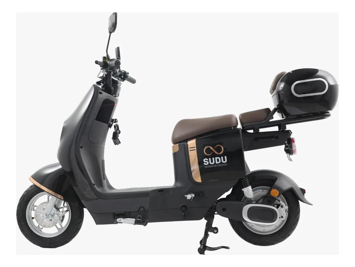 A SUDU A3 1000W é a scooter elétrica ideal para quem busca praticidade e economia no dia a dia. Não precisa de habilitação nem emplacamento, tornando seu uso livre de burocracias. Com potência de 1000W, ela oferece mais velocidade, autonomia e conforto para o seu deslocamento urbano! Destaques do modelo: - Potência de 1000W: Acelere com mais força e rapidez. - Autonomia de rodar até 60 km por carga, com 9% extras como reserva. - Baú Traseiro Em aço de alto carbono, mais resistente e durável. - Farol LED: Visibilidade e segurança para os seus trajetos. - Velocidade máxima de 32 km/h e carregamento rápido (5-6h). - Bateria de Lítio removível e freios a disco hidráulicos. - Amortecedores dianteiro e traseiro: Maior conforto em qualquer terreno. - Painel digital em LCD: Com hodômetro, indicador de velocidade e bateria. - Alarme anti-furto e trava nas rodas para mais segurança. -com capacidade de escalada de 25° Ficha técnica: - Bateria: 60V 20AH (Lítio removível) - Rodas: Pneus a vácuo 60/100-10 (Aro 10) - Carga máxima: 150kg - Banco para duas pessoas - Entrada USB para carregar dispositivos - Tamanho: 174cm x 63cm x 109cm Cuidados com a sua bateria e moto: Carregue com o carregador original e evite exposição a calor ou frio extremos. Evite áreas alagadas e mantenha a moto seca e bem armazenada. Cheque a vedação e as conexões regularmente para garantir a durabilidade. A SUDU A3 1000W oferece uma experiência única de mobilidade urbana, com segurança, economia e facilidade. Aproveite a liberdade de um transporte sem complicação! Garantia de fábrica: 12 meses